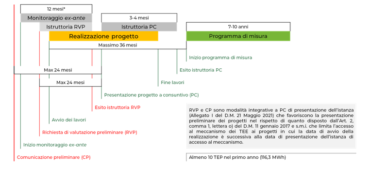 1) una comunicazione preliminare per manifestare la volontà di accedere al meccanismo di incentivazione con l’impegno di trasmettere il Progetto a Consuntivo (PC) o Standardizzato (PS) entro e non oltre 24 mesi dalla data di comunicazione; o