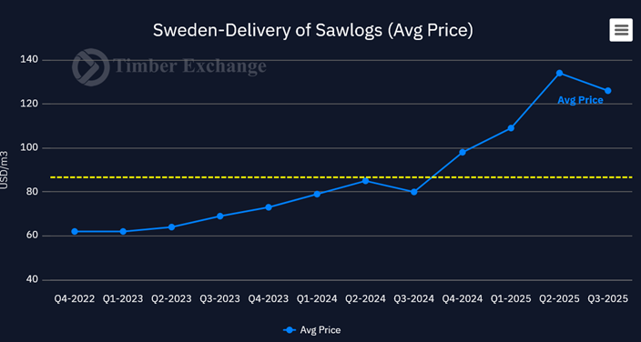 Grafico – Svezia: fornitura di tronchi da sega (prezzo medio)